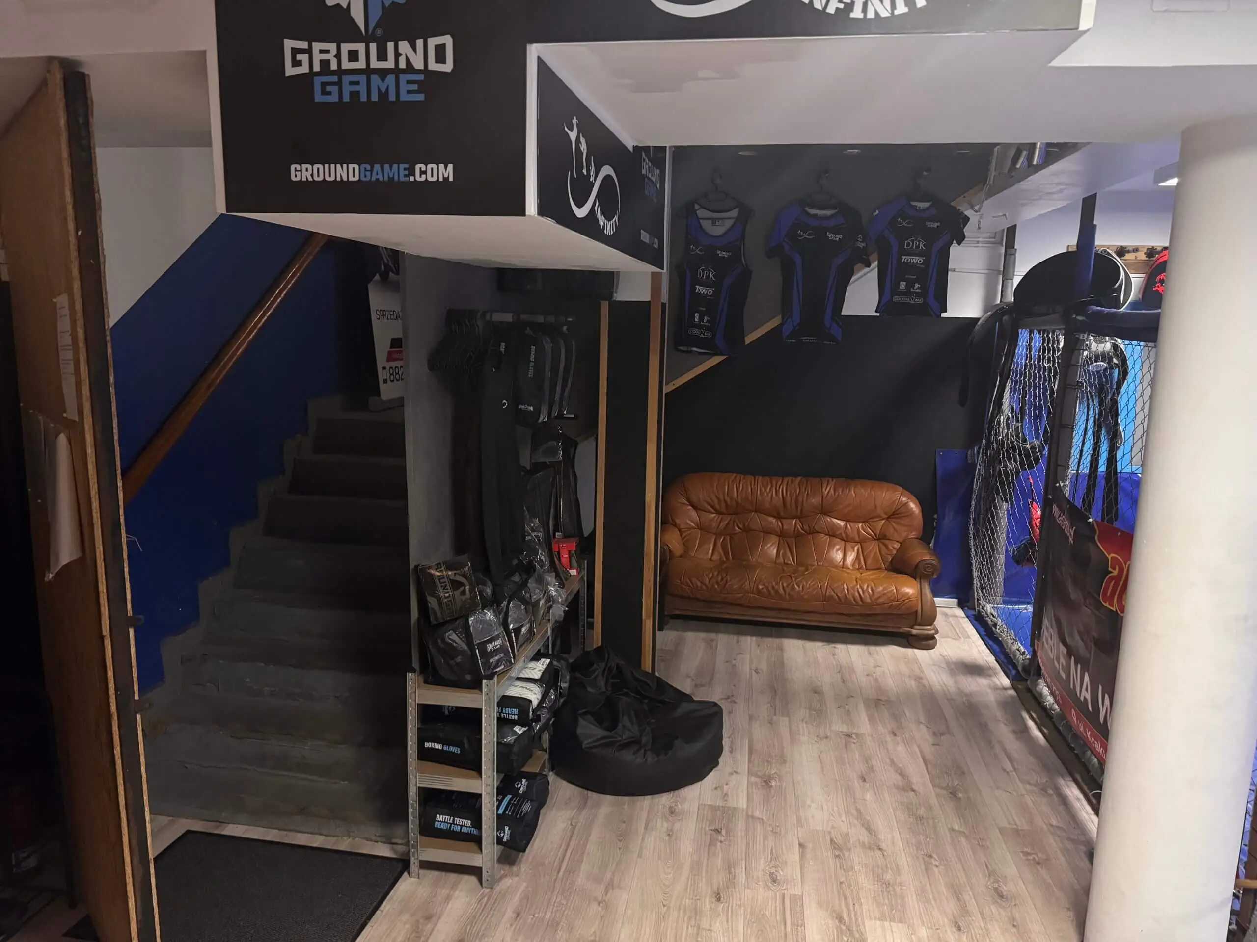 Jesteśmy najlepiej wyposażonym klubem w Elblągu specjalizującym się w sportach walki. Nasza przestrzeń treningowa to około 100 m² maty z zabezpieczoną ścianą oraz klatką, co stwarza idealne warunki do profesjonalnych treningów w Elblągu. W naszym klubie dostępna jest również recepcja i przestronne lobby, gdzie możesz obejrzeć trwający trening, przyjrzeć się swojemu dziecku podczas zajęć w Elblągu, a także porozmawiać z nami na tematy związane z funkcjonowaniem klubu, dietą, suplementacją czy planem treningowym. W wyjątkowych sytuacjach – zapraszamy do biura.